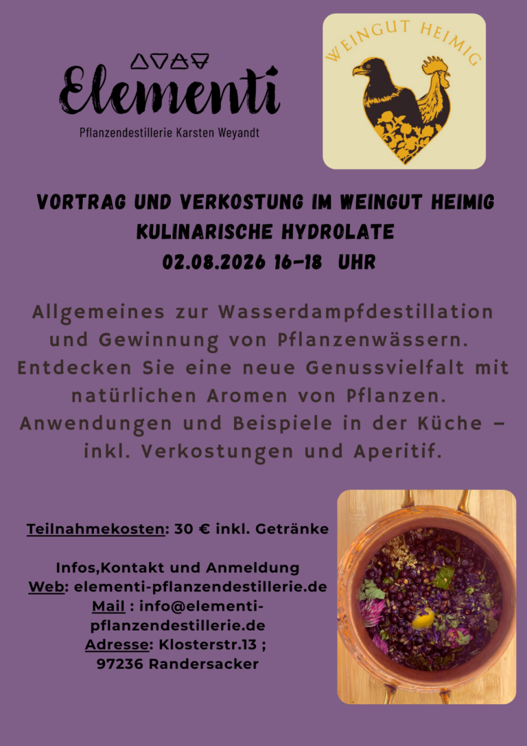 Anmeldung unter : info@elementi-pflanzendestillerie.de