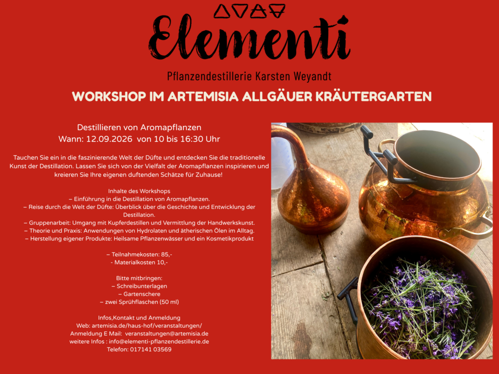 Infos :https://artemisia.de/destillation-von-aromapflanzen/202609121000/
